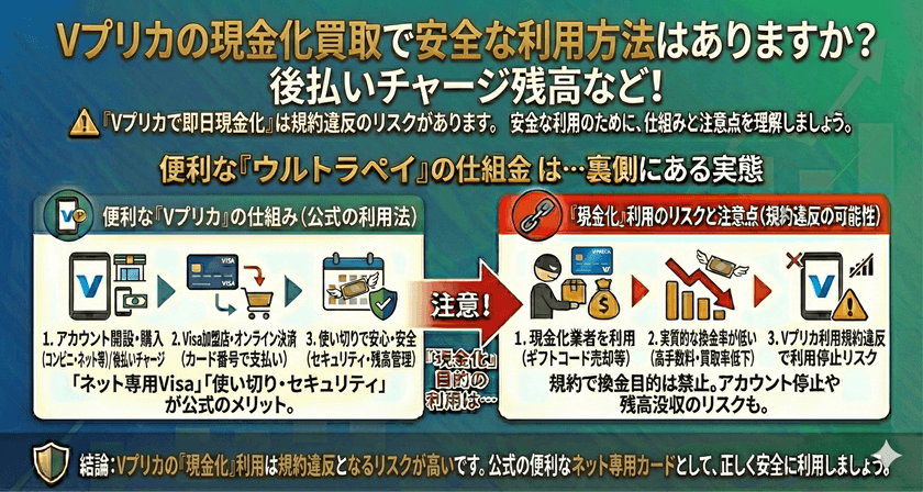 - なぜVプリカの現金化は推奨されないのか:主なリスク